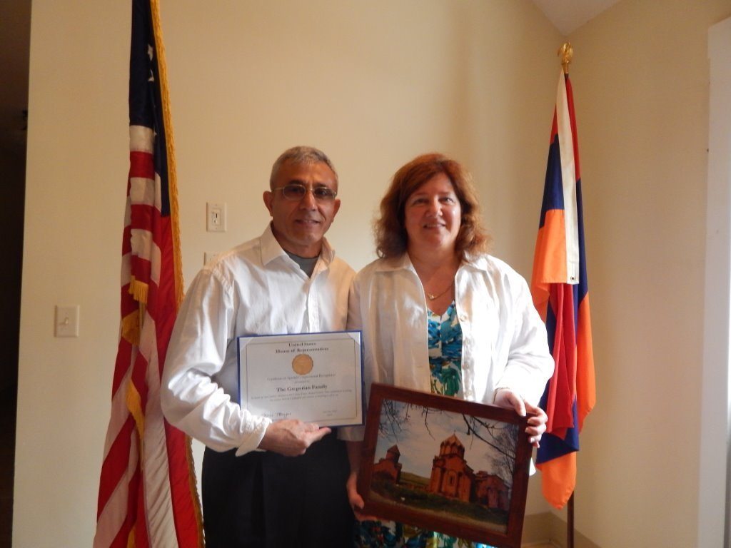 The citation reads: “To the Gregorian family in honor of its devotion to the United States Military. Your commitment in serving our nation remains an inspiration to us all.”