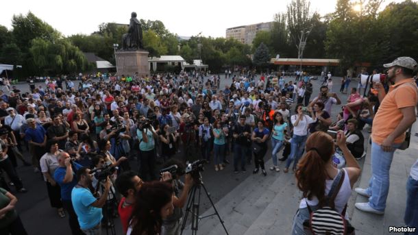 Sargsian and Avetik Ishkanian, a prominent human rights activist who also addressed the protesters, demanded that law-enforcement authorities avoid forcibly retaking the seized police building and freeing the hostages.