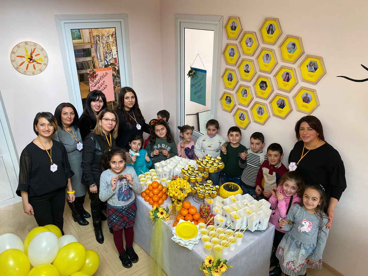 In the new Center, the bee serves as a symbol of diligence, production and punctuality. The staff welcomed the children to the new Center with images of the bee family. The children were happy to learn that they were also members of that bee family. The many types of flowers in their imaginary fairy tale garden had conventional names such as a flower of kindness, responsibility and care. They chose the flower nectar from which they would receive and bring their drop of honey into the Center, filling it with a symbolic honeycomb. Each made his/her own contribution by saying, “A drop of righteousness, kindness, faithfulness …” and they posted their bees on the wall as a promise to obey the Center’s rules, each repeating, “I am the Shogh.”