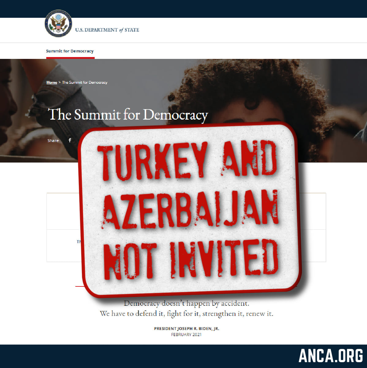 Naturally, Azerbaijan and Turkey were not too pleased that Armenia was invited to the Summit, while they were excluded. In an article published by AzerNews newspaper titled, “Democracy summit or clear example of double standards,” Ayya Lmahamad quoted Vugar Iskandarov, a member of Azerbaijan’s Parliament, who complained, “it is ridiculous that countries such as Azerbaijan, Turkey, and Hungary are not invited to the summit, where the level of democracy is much higher than that in the majority of invited countries.” Iskandarov must be completely blind to the grave human rights abuses and absence of democracy in the autocratic regimes of Azerbaijan and Turkey.