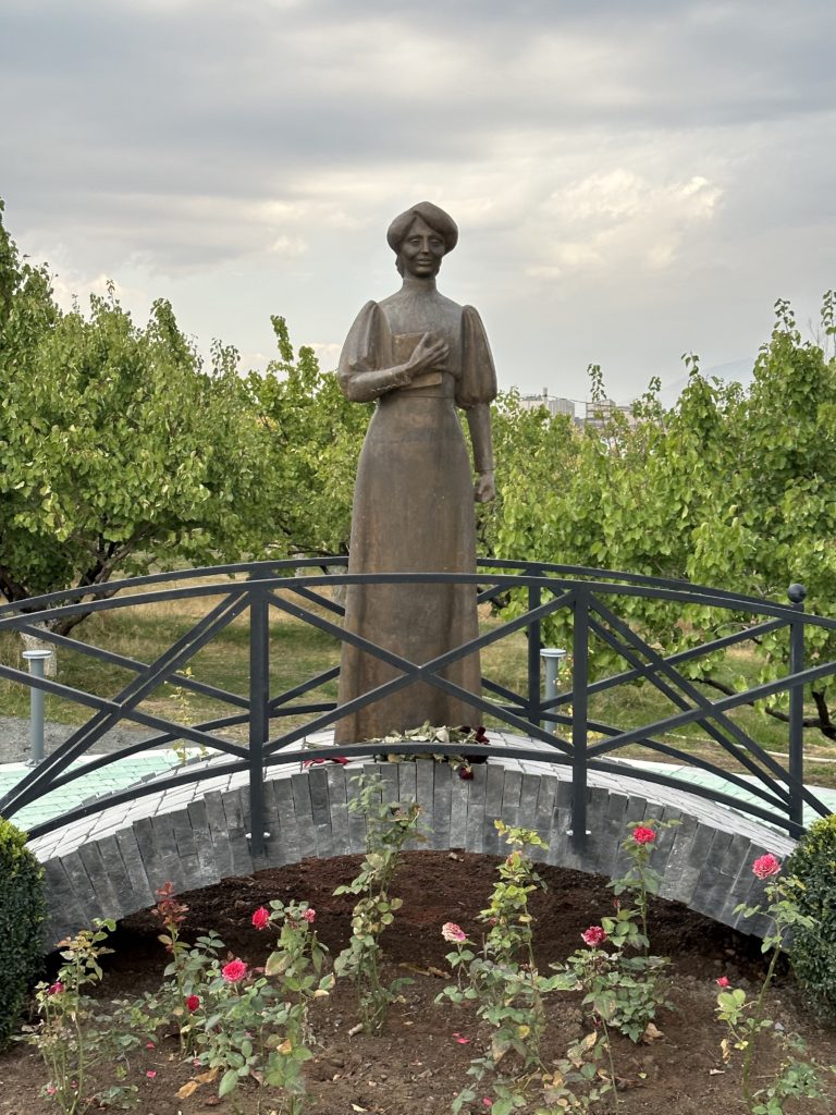 Through our friends Judy Saryan and her husband Victor Zaroogian, we learned of a sculpture of the Armenian writer, humanitarian and activist Zabel Yesayan in the town of Proshyan. We were unable to attend the dedication, but we still wanted to stop and visit. Judy arranged for us to meet with Arthur Grigoryan, the director of what is now known as the Zabel Yesayan Agribusiness Center (ZYAC). What we discovered was much more than the beautiful likeness of this incredible woman. The ZYAC has acquired several hectares of prime land where the center is located and has a clear vision to transform the campus into a research and teaching center for agricultural enterprises. We were honored to witness the impressive start with plans for a vineyard, beehives research and orchards to bring innovation and productivity to many agribusinesses in Armenia and Artsakh. Arthur showed us the phases of expansion to fulfill their vision. Judy and Victor are activists in their own right, quietly promoting these breakthrough programs. This campus will enhance and expand a very important segment of Armenia and Artsakh’s economy. The possibilities are almost endless. Humble heroes and small miracles.