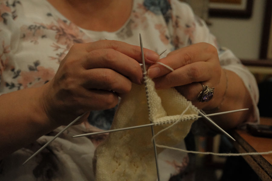 For the past year, Sona has been coming to the center every weekend, often bringing her children. “You come to a place like this and it is an environment that makes you feel close to your homeland,” she said. “Artsakh’s spirit is here.” Other women nodded and murmured in agreement as they inspected and straightened stitches across a tabletop tangled with yarn.