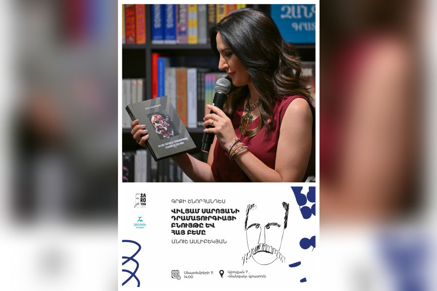 From September 4 to 11, Yerevan hosted the Saroyan Days festival, an initiative of the William Saroyan Foundation, which concluded with the presentation of The Nature of William Saroyan’s Dramaturgy and the Armenian Stage (Yerevan: Gitutyun, 2025, 246 pages), a scholarly monograph by Anush Aslibekyan — Senior Researcher at the Theater Department of the Institute of Arts of the National Academy of Sciences of Armenia, Ph.D. in Art Studies, and Associate Professor.