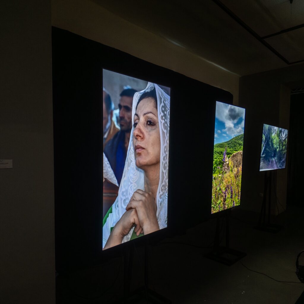 The first part presents the stories of 120 women from Artsakh. Their silent presence is both painful and powerful — a reminder that these experiences are not only personal but also collective. The visual narrative is accompanied by excerpts from interviews, conveying the women’s emotions, fears and hopes.