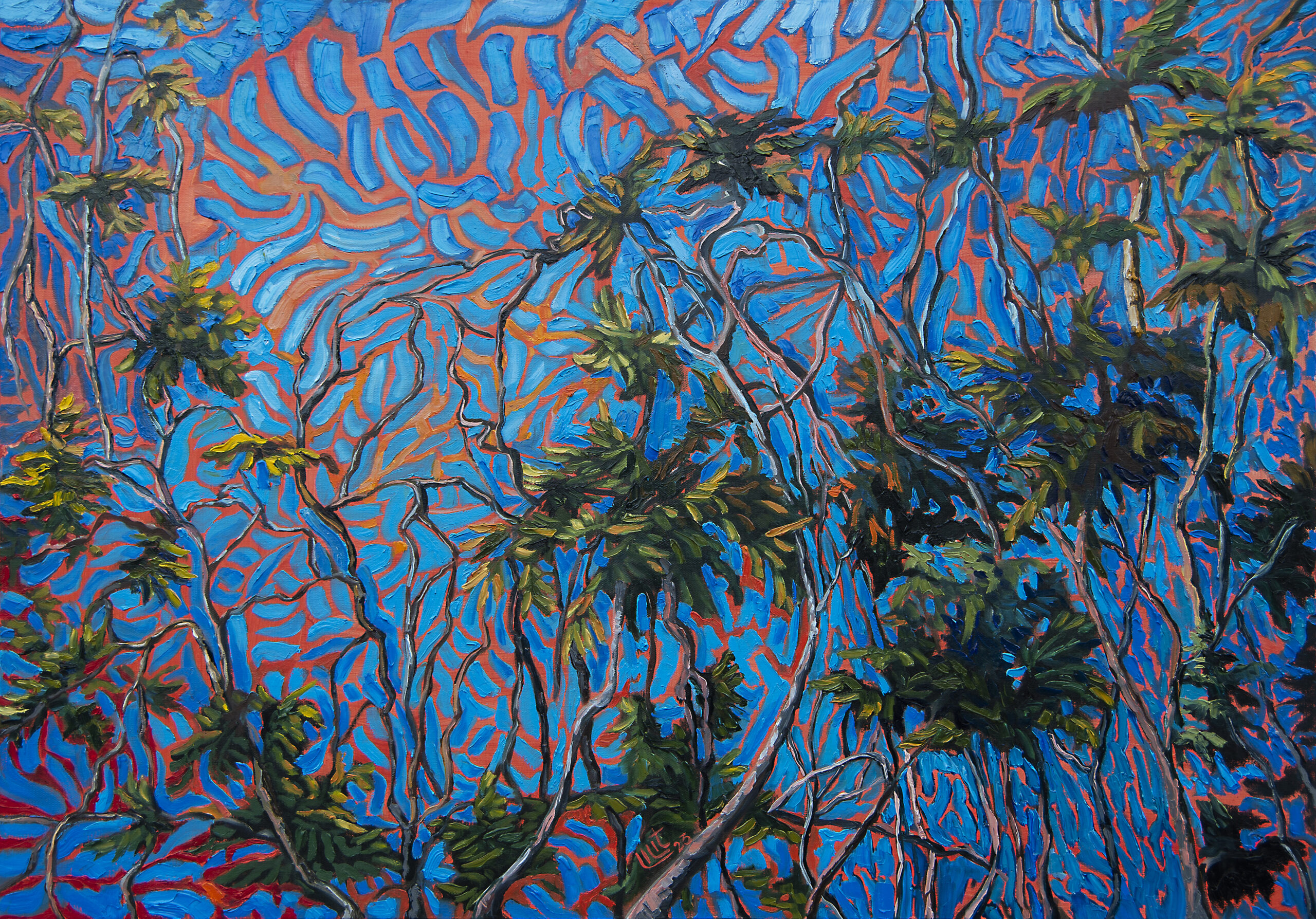 Her canvases are also ecological meditations — acts of witness and warning. “Nature is alive in my works,” she said. “Trees and landscapes have their own emotions. Colors depend on light, feeling and the moment. It is essential that people feel part of nature and recognize its significance. Cutting down or burning trees without thinking of the future is unacceptable.”