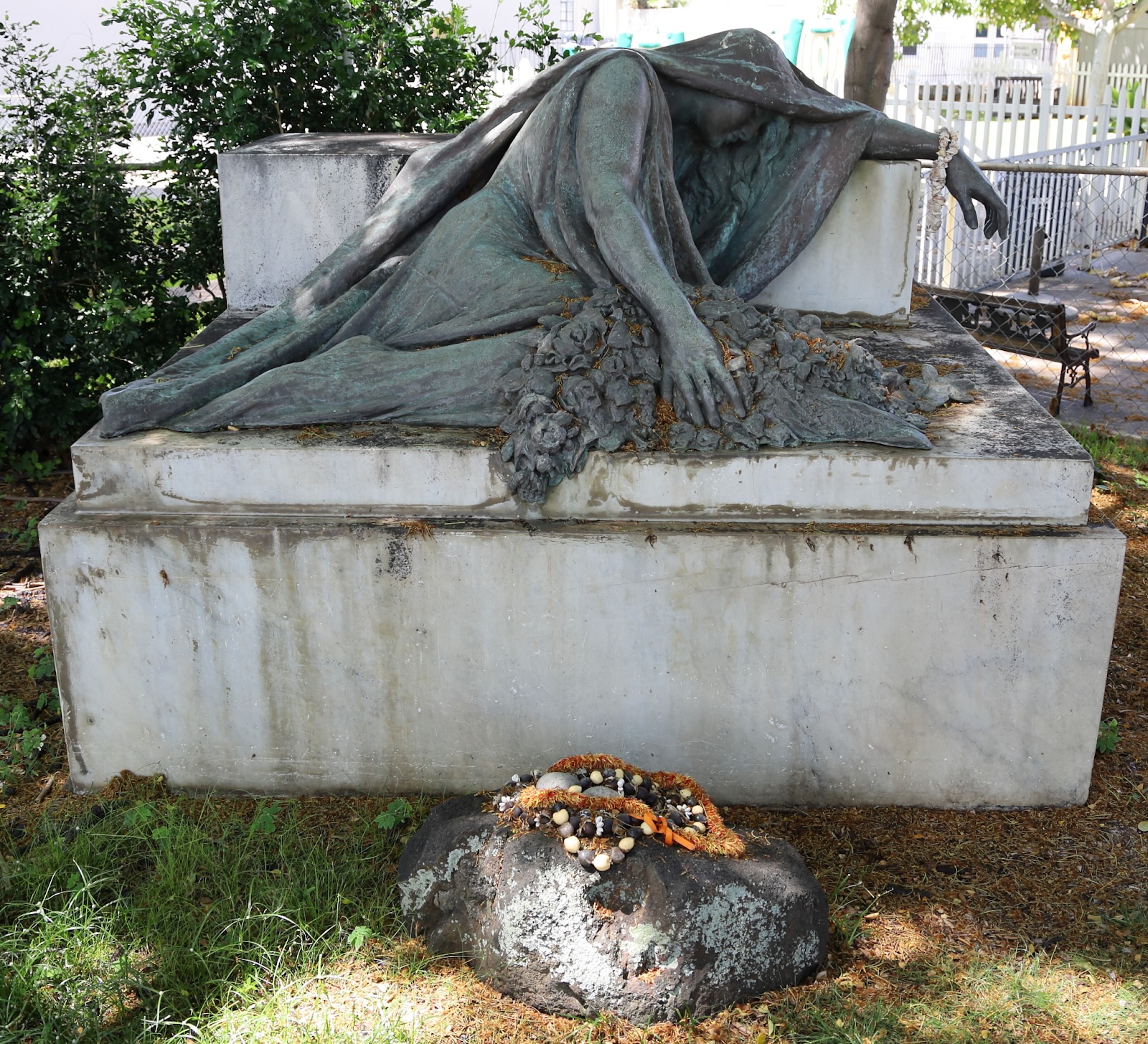Carved upon the marble are shrouded figures with their faces turned toward heaven. Also carved upon it is the figure of a woman representing Hannah Maria Rice Isenberg (1842-1867), the mother of Paul Isenberg, one of the commissioners of the memorial. She has turned to look earthward at the bronze figures on the monument steps that depict her grieving children: Mary Dorothea Rice Isenberg and Paul Isenberg. The monument seamlessly bridges the earth with the heavens, while evoking separation from earthly matters and unifying the spectator with the divine. It is truly a work of art, one worth seeing next time you find yourself in Kauai.