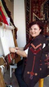 Her students range in age from 7 to 64. “Some are interested in the social connection, others in the work itself, and some come to soothe the longing for a grandmother’s memory,” she says. She takes pride in students who have become teachers themselves. Although keeping young people at the loom in today’s technological age is a challenge, she believes cultural memory of Armenian children awakens at the very first knot.