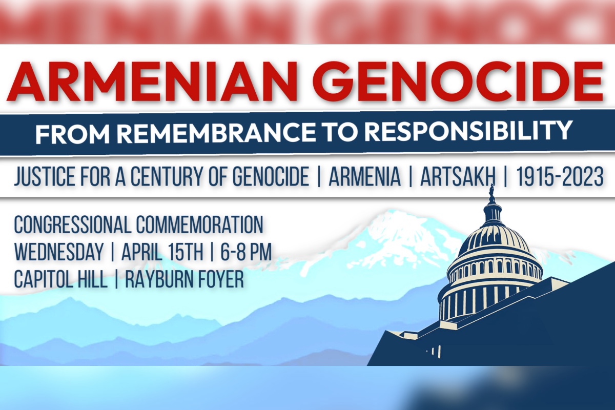 From Remembrance to Responsibility — ANCA and Armenian Assembly of Capitol Hill Commemoration, in cooperation with the Congressional Armenian Caucus. Wednesday, April 15, 2026, 6:00–8:00 p.m., Rayburn HOB Foyer.
