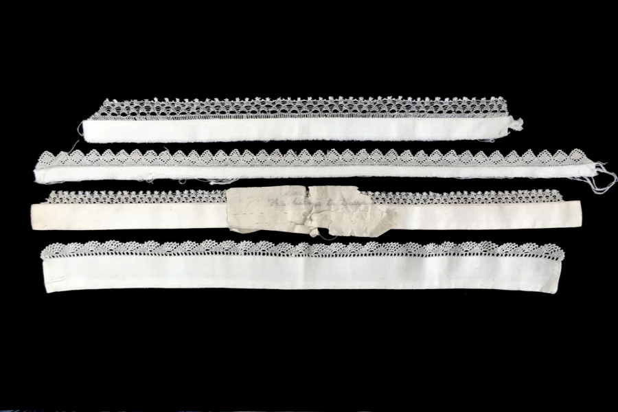 Satinig Chopoorian, four needlelace-trimmed collars, Kharpert, Turkey, early 1910s, sent to Deborah Valoma’s grandmother, Sara Sohigian, in Fresno by her first cousin, Satinig, right before she died on the death march to Aleppo. (Photo: Deborah Valoma)