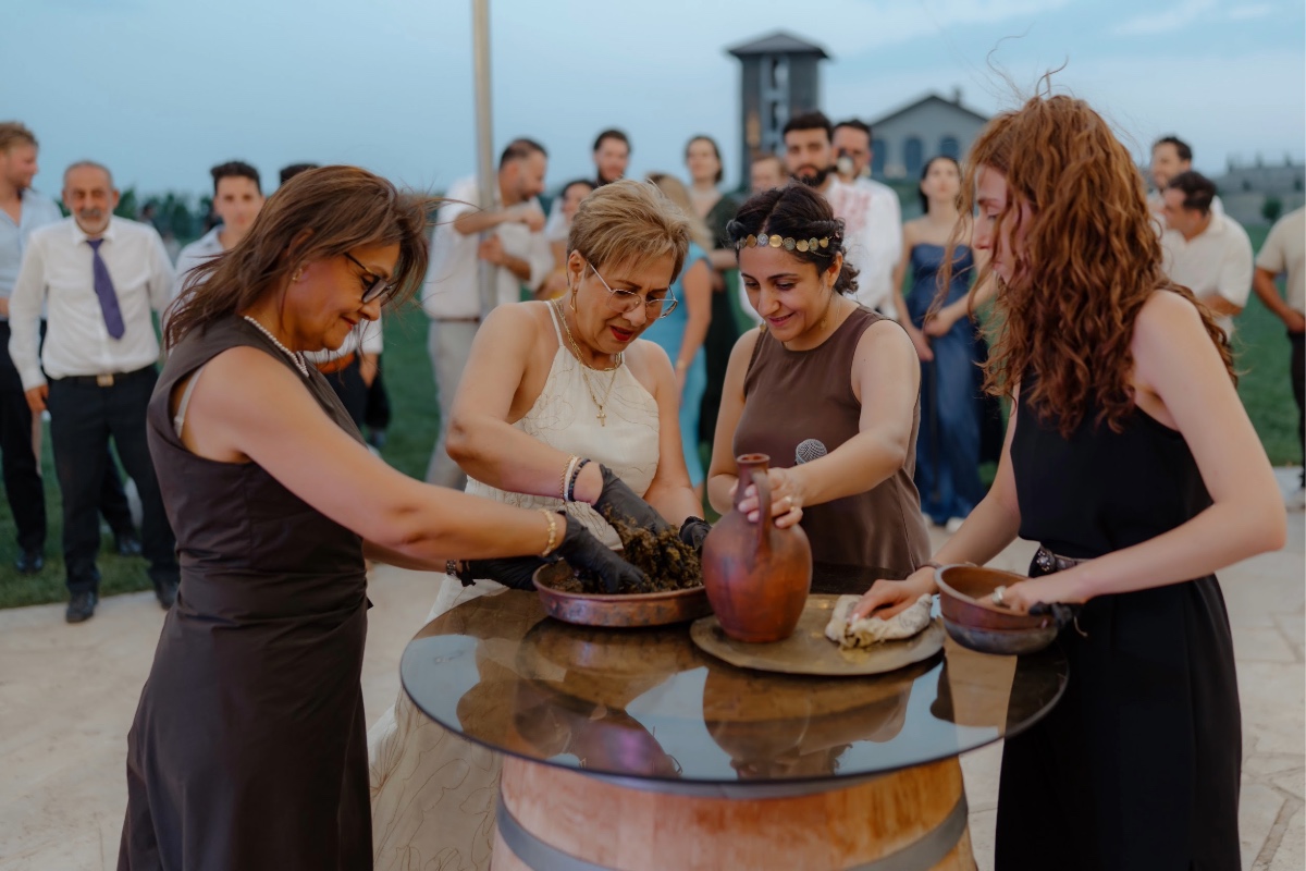 At the core of Tonir’s Armenian traditional wedding is also a mission to educate, inform and study the national. This does not mean rejecting anything foreign, but to choose the national, one must first become familiar with it, understand how close it is to you and how much it reflects them. People who use their services usually arrive in Armenia seeking a cultural or tourist experience, and they also need to structure their time beyond the wedding itself. For such clients, this becomes a day filled with rituals, where they can present traditions to their guests and more.