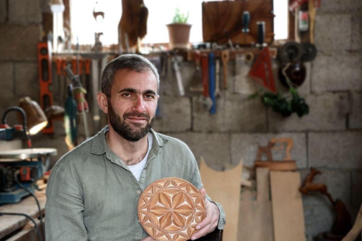 Razmik’s dialogue with wood began during the “dark and cold” years of the 1990s. Back then, while other children occupied themselves with outdoor games, Razmik spent his winter evenings by the wood-burning stove. He divided his time between the pages of a book and small pieces of wood, carving necklaces, miniature axes and mouthpieces for his grandfather.